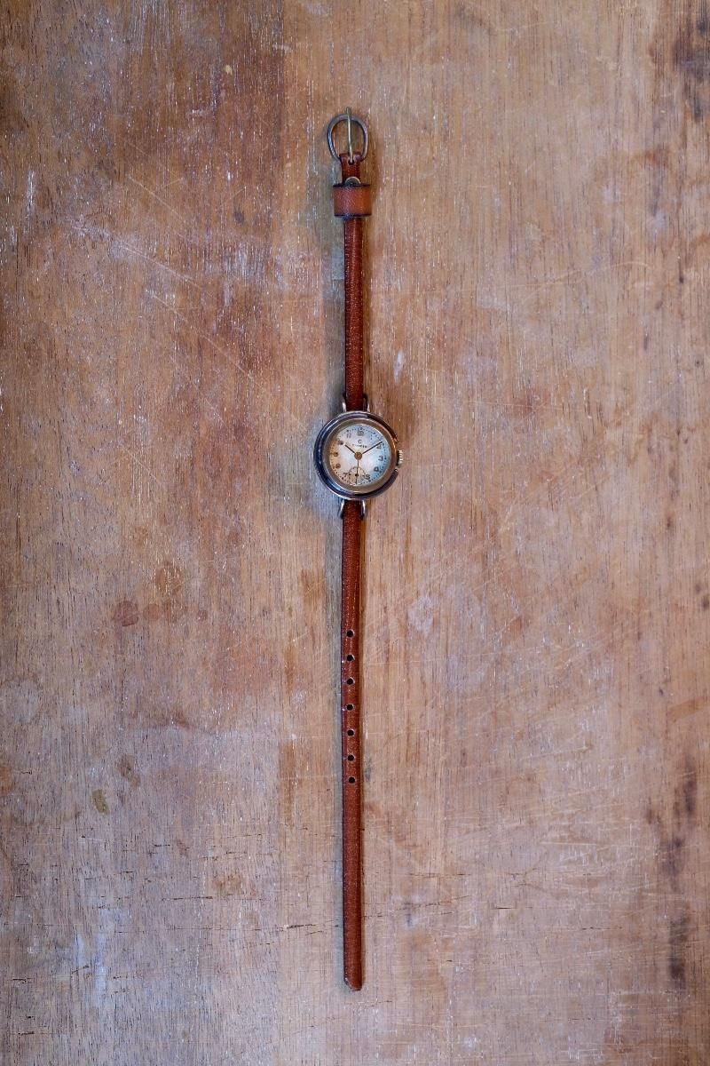 ・ケースは真鍮製です。汗などで緑青が生じる事がございます。汗がついた際にはよく拭き取ってからお使いください。
